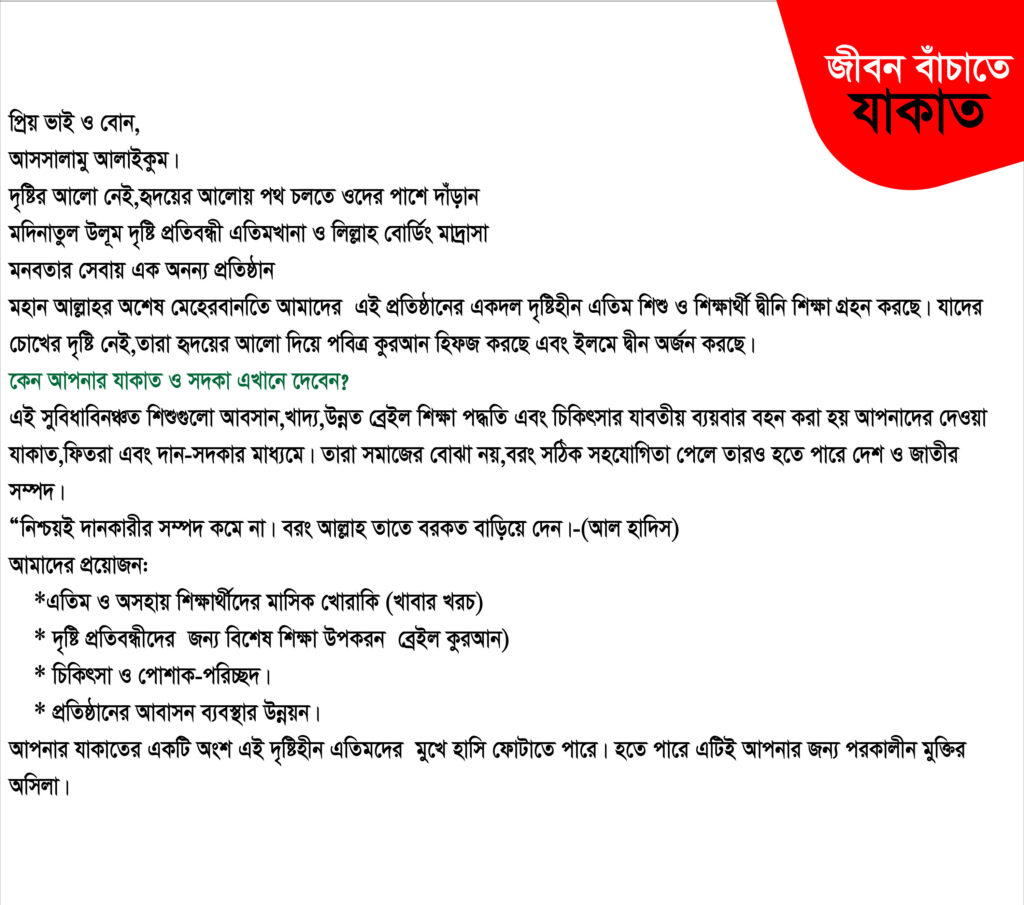 (যেমন: মাসে ৩,৫০০ – ৪,০০০ টাকা, দায়িত্ব নেন, তবে সেটি আপনার জন্য পরকালে স্থায়ী আমল হিসেবে জমা থাকবে।